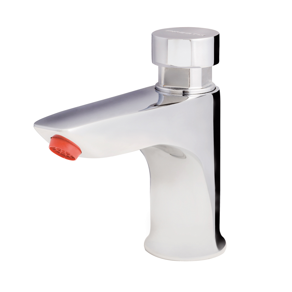 Con rompeaguas. *Apertura por pulsador. *Cuerpo y pulsador en latón cromado, piezas interiores en materiales resistentes a la corrosión y a las incrustaciones calcáreas. *Cabeza intercambiable que comprende todo el mecanismo del grifo. *Caudal regulable por el instalador en función de la presión. *Peso bruto: 0,730 Kg. *Certificado por AENOR respecto a EN816.