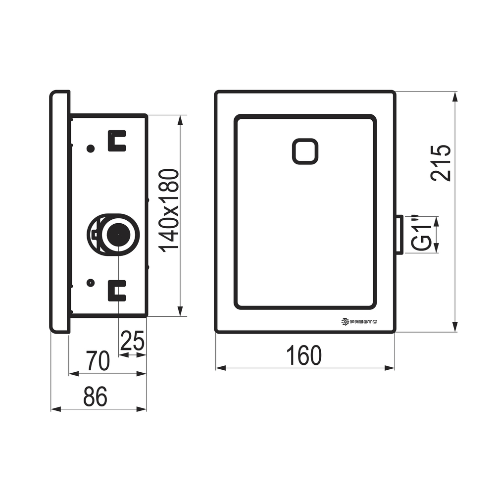 Fluxor temporizado para inodoro, instalación mural empotrada.