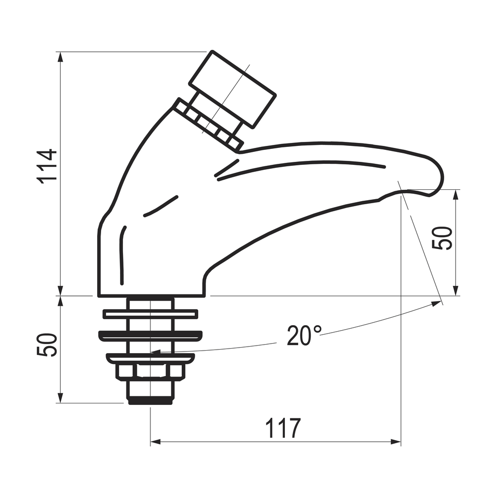 Grifo temporizado ecológico de un agua para instalación sobre repisa con cuerpo de latón cromado.