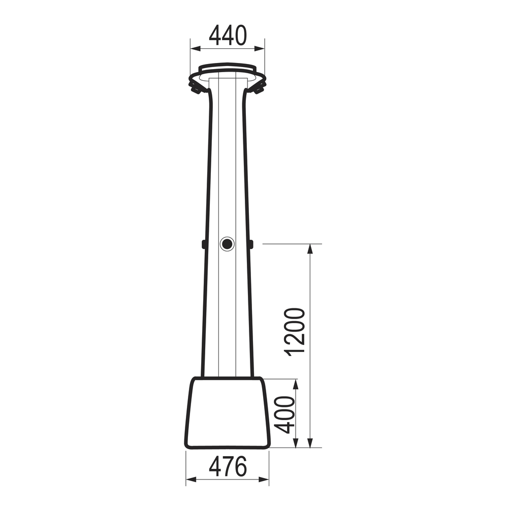 ^Columna de polietileno de alta densidad coloreado en gris moteado en negro, base con refuerzo antivandálico. *Pomos de ducha antivandálicos. *Protección antivandálica de fijación al suelo por dos refuerzos del mismo material y color. *4 tornillos en inoxidable para fijación de la columna sobre una base de hormigón de 600 x 600 x 100 mm (mínimo). Filtro y alimentación por llave de paso *Altura 2,225 m. *Peso bruto: 31 kg. *Grifos temporizados Presto 50.