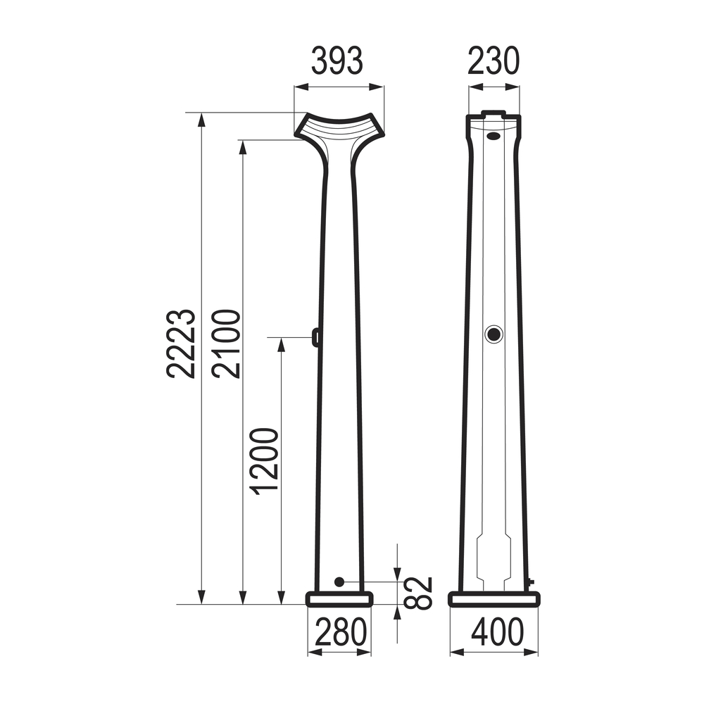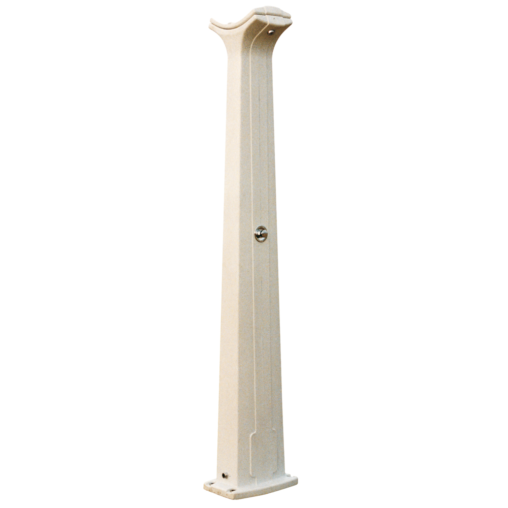 ^Columna de polietileno de alta densidad coloreado en gris moteado en negro, base con refuerzo antivandálico. *Alimentación por racor de unión ¾” con junta ltro. *Pomos de ducha antivandálicos. *4 tornillos en inoxidable para fijación de la columna sobre una base de hormigón de 600 x 600 x 100 mm (mínimo). *Altura 2,225 m. * Peso bruto: 22 kg. *Grifos temporizados Presto 50.