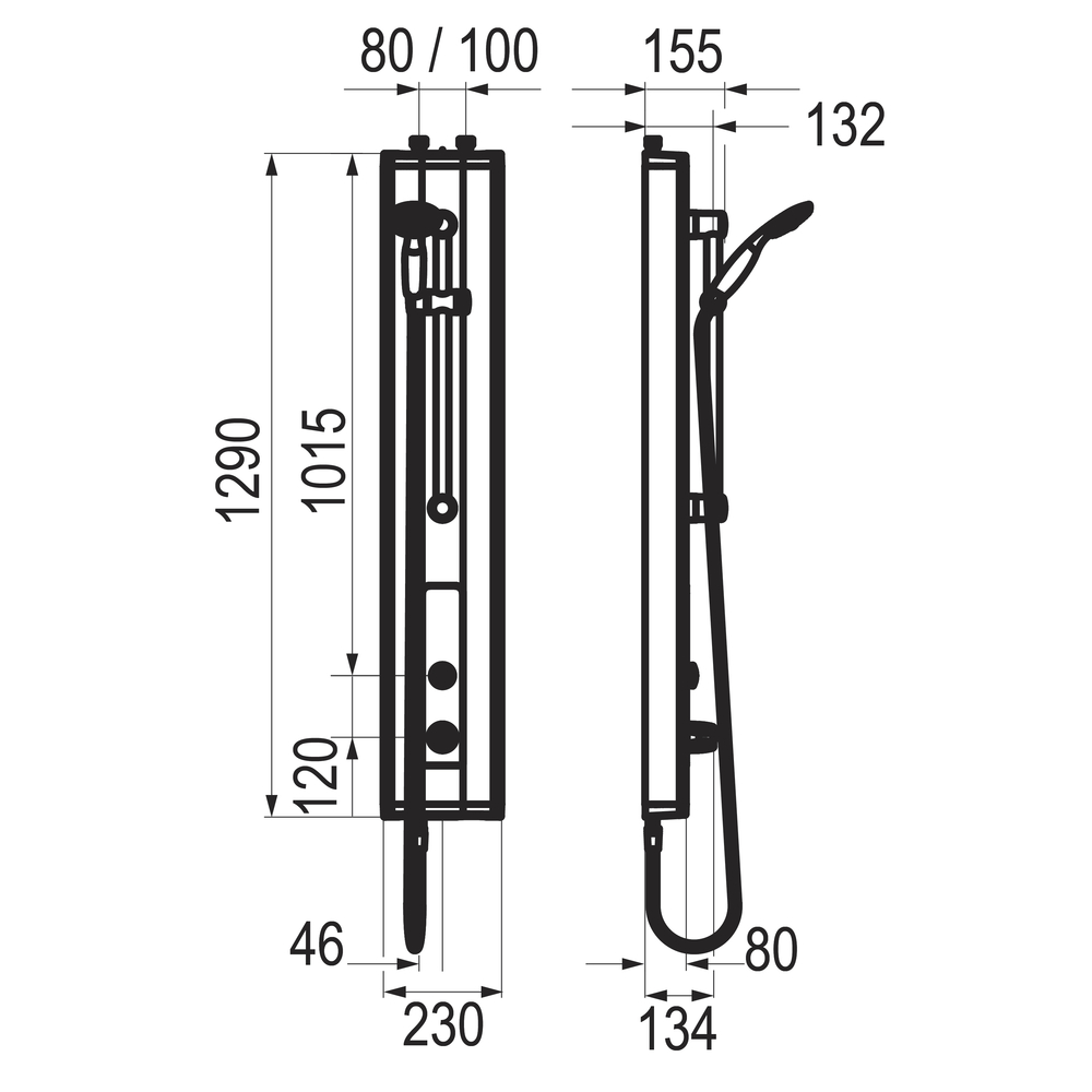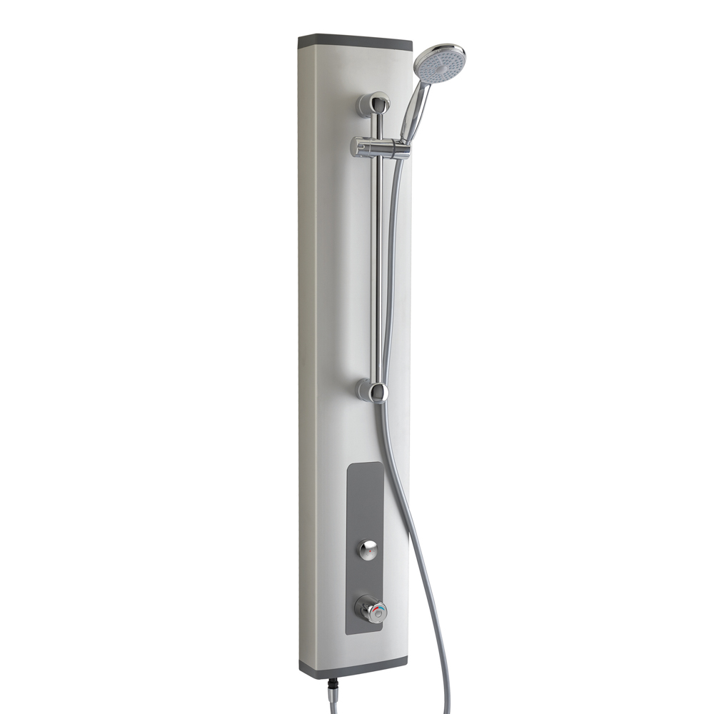 ^Presión de uso recomendada: 1 a 5 bar. *Dispositivo contra golpe de ariete integrado. *Cabezal de ducha fijo con dirección orientable y orificios antical. *Perfil aluminio de 2,5 mm pintado y cabezales en ABS de alta resistencia. *Resistente a una temperatura de 75 °C durante 30 mins bajo el choque térmico. *Temperatura máxima de seguridad prefijada: 38 °C. *Sistema de seguridad que corta la salida de agua en caso de fallo en el suministro de agua fría. *Fácil mantenimiento. (*) Sistemas para cajas de desinfección automática.