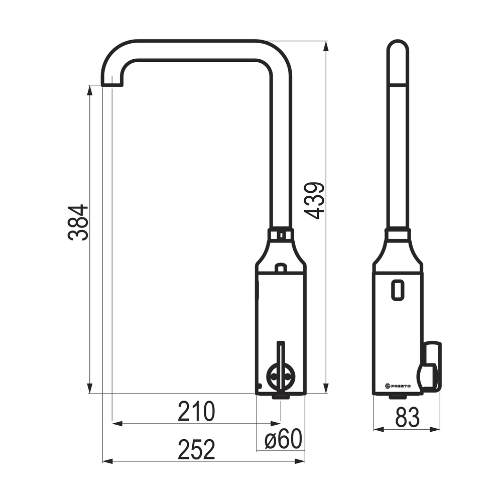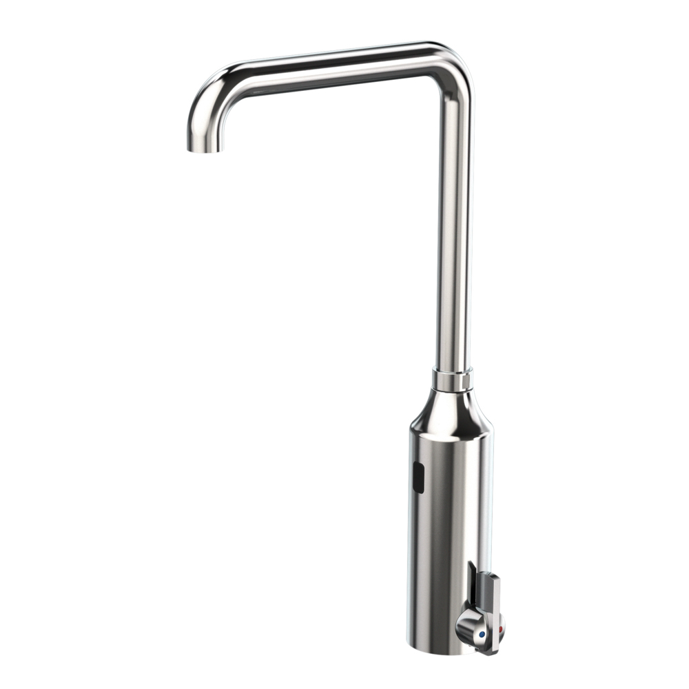 ^Ahorro de agua y energía. *Proceso automático de adaptación al medio. *Componentes integrados: mantenimiento sencillo y excelente estanqueidad.*Componentes integrados en el grifo para fácil instalación e incremento de protección antivandálica. *Gran versatilidad gracias a la altura de su caño y a la posibilidad de giro del mismo. *Gran autonomía con 4 pilas alcalinas. *Cuerpo de latón cromado. *Mezclador mediante maneta de gran confort. *Sistema antibloqueo del sistema de detección. *Caja estanca IP65 para 4 pilas alcalinas de 1,5 V. *Gran autonomía (de 3 a 5 años con 50.000 utilizaciones por año. Led de comunicación. *Presión de uso recomendada: 1 a 5 bar.*Los modelos caño giratorio con posibilidad de bloqueo en posición fija.