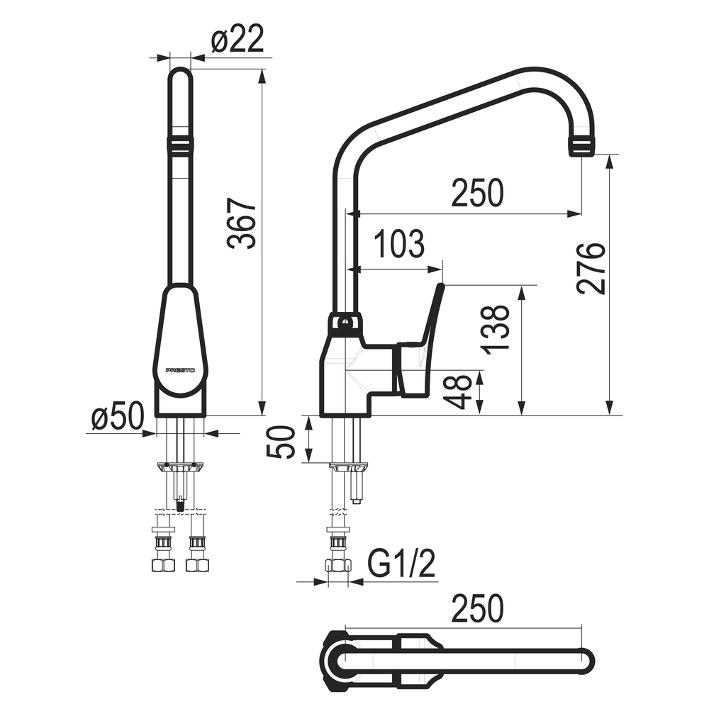 Grifo monomando para instalación sobre repisa con caño reforzado. *Resistente al uso intensivo *Caño giratorio 360 ° con sistema antifricción que no causa desgaste prematuro en el uso intensivo. *Los flexibles son resistentes a las altas temperaturas. *Boquilla higiénica interior liso evitando la retención de agua y el desarrollo de las bacterias. *Cuerpo y caño en latón cromado. *Canaliza el agua y evita salpicaduras de agua laterales. *Caño alto para dejar pasar contenedores grandes. *Caudal 25 l/min a 3 bar y máxima apertura. *Cartucho cerámico *Presión de uso recomendada: 1 5 bar. *Entrada G1/2 hembra. *Accionamiento mediante maneta monomando. *El agua fluye hasta que el usuario lo detiene manualmente. *Temperatura admisible de agua: los materiales que componen las piezas de los grifos pueden soportar una temperatura máxima de 75ºC durante 30 mins máximo. *Suministrado con: elementos de fijación,latiguillos flexibles y válvulas antirretorno.