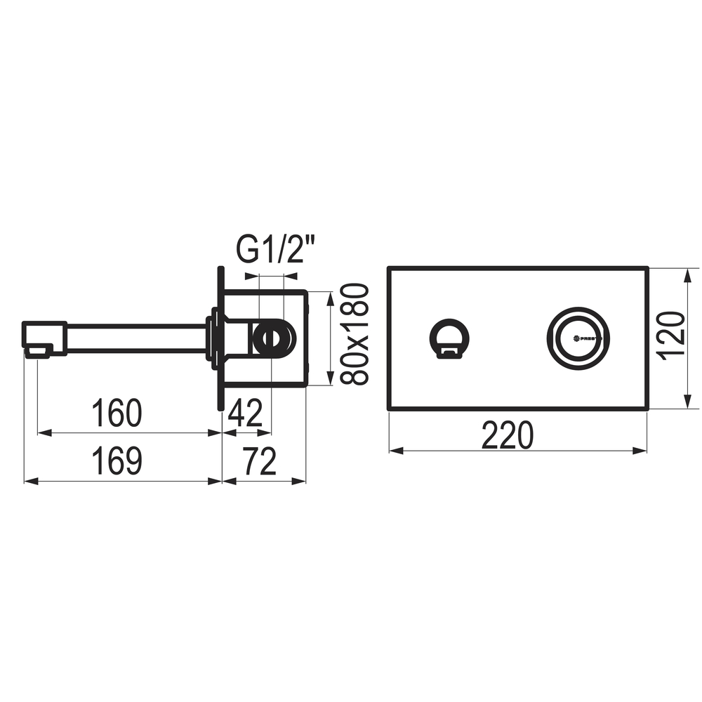 Cuerpo, pulsador en latón, piezas interiores en materiales resistentes a la corrosión e incrustaciones calcáreas. Cabeza intercambiable que comprende todo el mecanismo del grifo. *Placa exterior de latón, exceptuando el modelo Inox (acero inoxidable).Peso bruto: 1,920 kg.
